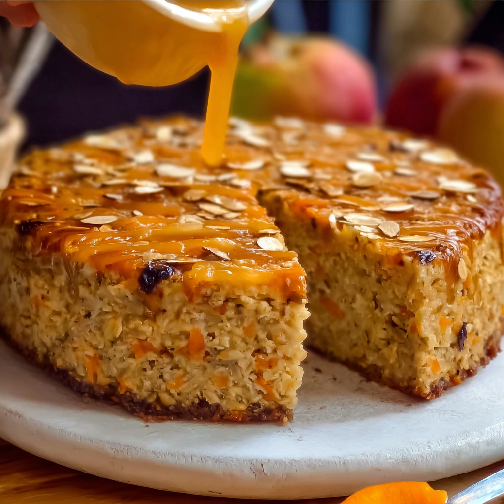Resumen: Desayuno horneado tipo pastel hecho con avena, zanahoria rallada, manzana y especias. Sin harina refinada y lleno de fibra.